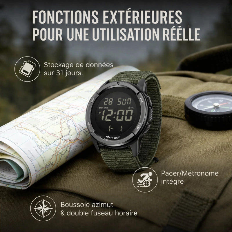 Oui. Toutes les fonctions (heure, boussole, podomètre, chronomètre, éclairage) sont intégrées et utilisables de manière autonome.