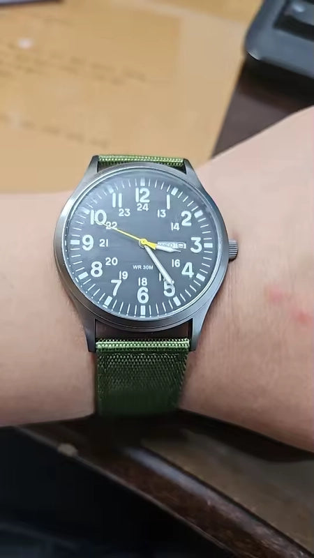 Oui — le bracelet NATO durable convient à la plupart des tailles de poignet (ajustable de 14,5 cm à 22 cm).